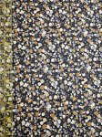 Cream, Brown, Grey, dots on black branches. Dark grey background